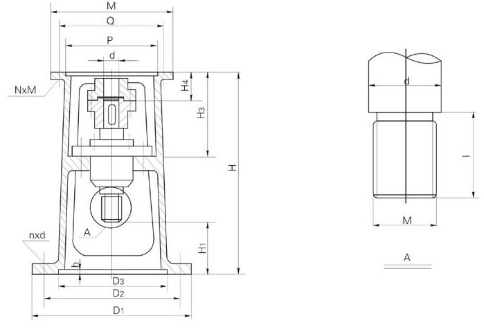 TB型HG5-251-69標(biāo)機(jī)架不宜于選用無(wú)支點(diǎn)、單支點(diǎn)機(jī)架時(shí),應(yīng)選用雙支點(diǎn)機(jī)架。但選用的雙支點(diǎn)機(jī)架下支點(diǎn)軸承結(jié)構(gòu)采用帶緊定套的錐孔調(diào)心滾子軸承便利于安裝維修,且攪拌軸與減速機(jī)之間的聯(lián)接 選用HL型彈性柱銷聯(lián)軸器。