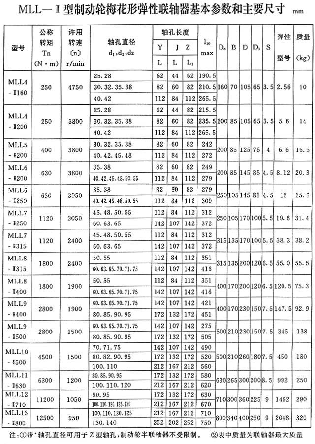 LMZ-Ⅱ(原MLL-Ⅱ)型帶制動(dòng)輪梅花形彈性聯(lián)軸器是由兩個(gè)帶凸爪形狀相同的半聯(lián)軸器和彈性元件組成,利用梅花形彈性元件置于兩半聯(lián)軸器凸爪之間,以實(shí)現(xiàn)兩半聯(lián)軸器的聯(lián)接。具有補(bǔ)償兩軸相對(duì)偏移、 減振、緩沖、徑向尺寸小、結(jié)構(gòu)簡(jiǎn)單、不用潤(rùn)滑、承載能力較高、維護(hù)方便等特點(diǎn),但 換彈性元件時(shí)兩半聯(lián)軸器需沿軸向移動(dòng)。適用于聯(lián)接兩同軸線、起動(dòng)頻繁、 正反轉(zhuǎn)變化、中低速、中小功率傳動(dòng)軸系、要求工作性高的工作部位,不適用于重載及軸向尺寸受限制、 換彈性元件后兩軸線對(duì)中困難的部位。