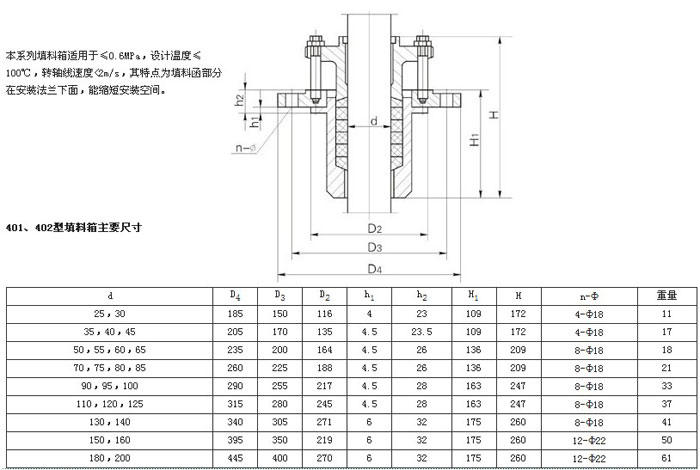 六、401型碳鋼下伸式填料箱,402型不銹鋼下伸式填料箱