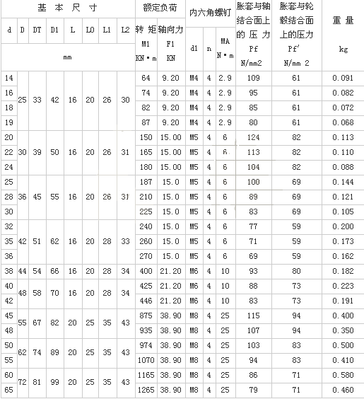 Z14型脹緊聯(lián)接套適用于軸和軸套之間的無鍵聯(lián)結(jié)裝置可從外部對軸套施加夾緊力,使軸與軸套之間形成機(jī)械壓縮配合,而傳遞扭矩,脹套本身不傳遞任何力矩及負(fù)載,容易安裝、拆卸.