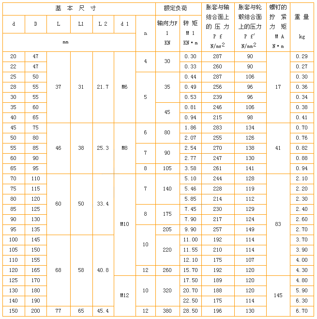 特性: Z3型脹緊聯(lián)接套內(nèi)外錐環(huán)用內(nèi)六角螺栓擰緊,能傳遞較大載荷,并且一個錐環(huán)上有拆卸螺紋孔;Z3型結(jié)合面較長,對中性好,適用于旋轉(zhuǎn)精度要求較高和傳遞大載荷的場合。
